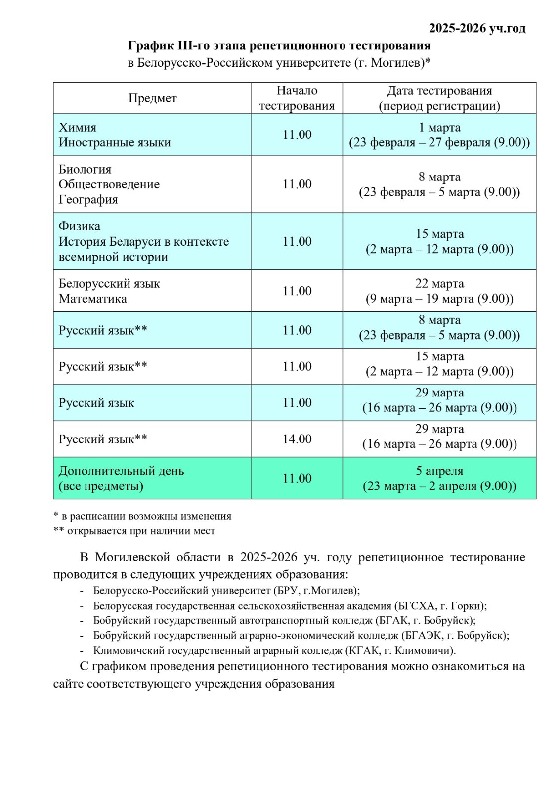 Регистрация на репетиционное тестирование начинается до 10.00 первого дня регистрации, а заканчивается в 9.00 последнего
