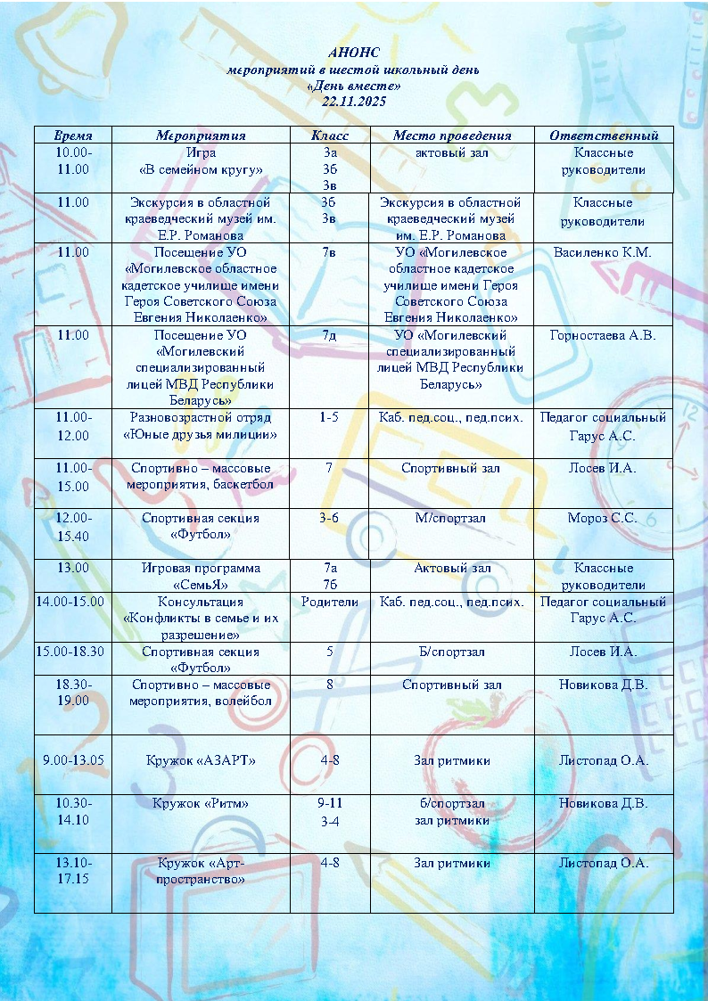 АНОНС МЕРОПРИЯТИЙ ШЕСТОГО ШКОЛЬНОГО ДНЯ 22.11.2025