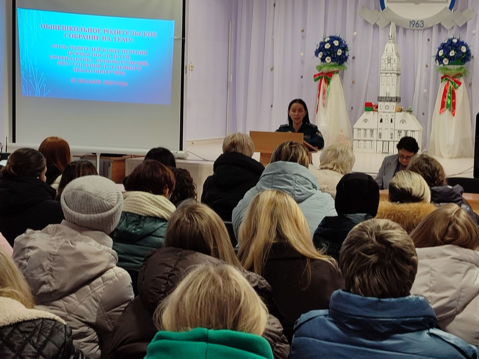 22 декабря в школе прошло общешкольное родительское собрание с участием субъектов профилактики. В преддверии новогодних праздников и зимних каникул особое внимание было уделено вопросам ответственности родителей за безопасность детей. В рамках областной межведомственной акции «Поговори с ребёнком» состоялся содержательный разговор с родителями о важности доверительного общения в семье и совместных усилий по воспитанию ответственного поведения у подростков.