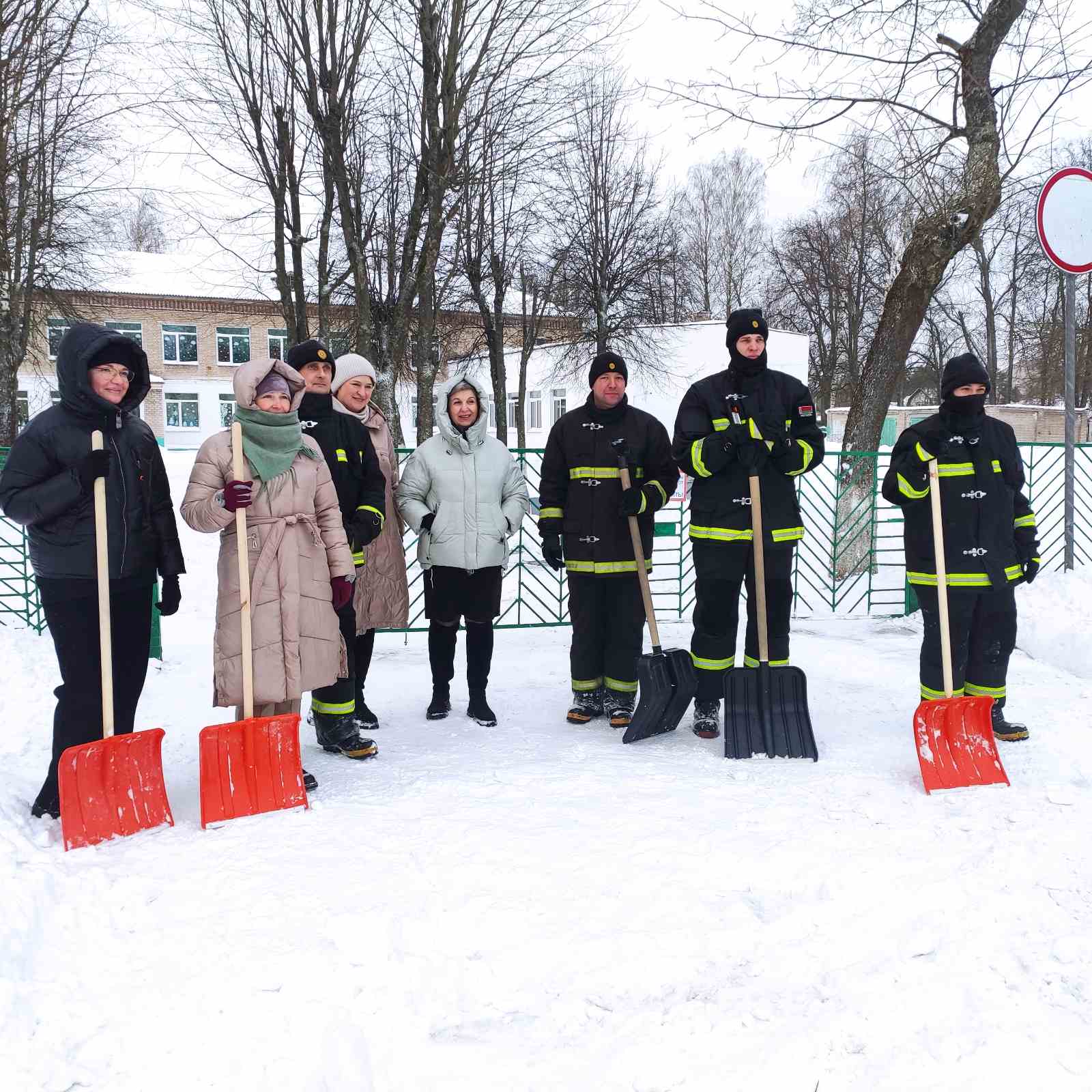 В разгар работ на помощь школьному «десанту» пришло серьёзное подкрепление — сотрудники МЧС РБ. Заметив масштаб работ и понимая важность безопасности учреждения образования, они не остались в стороне. С их профессиональным подходом работа пошла в разы быстрее. Совместными усилиями была расчищена не только пешая часть, но и подъездные пути для спецтранспорта, что особенно важно для обеспечения безопасности.